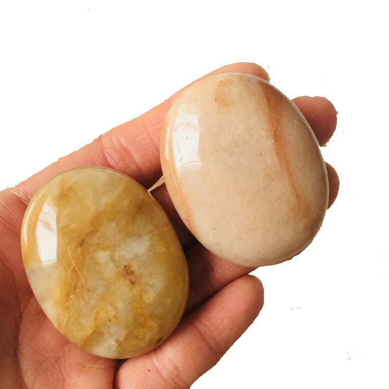 Crystal Yellow Aventurine Palm Stone Natural Healing Gemstone Carved Quartz Agate Crystal Crafted Pebble for Spiritual