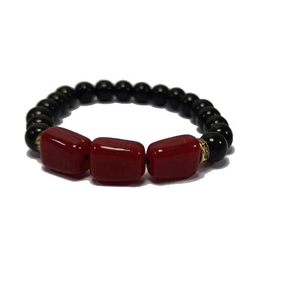 Crystal bracelet Black Obsidian & Red Cube Round Beads 8mm Stone Gemstone Fashion Men and Women Gift Energy
