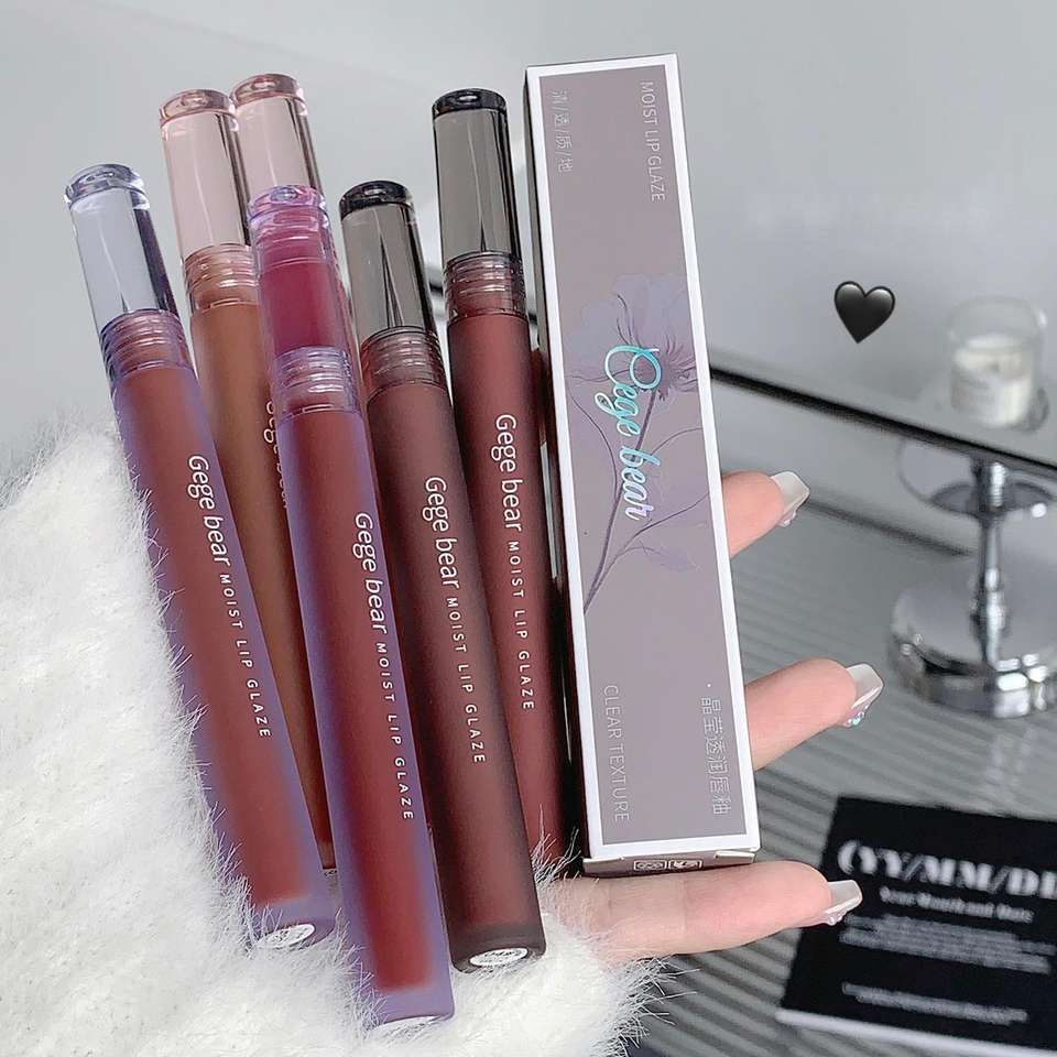 Crystal clear lip glaze velvet matte not easy to stick cup lipstick hold makeup white female beauty makeup