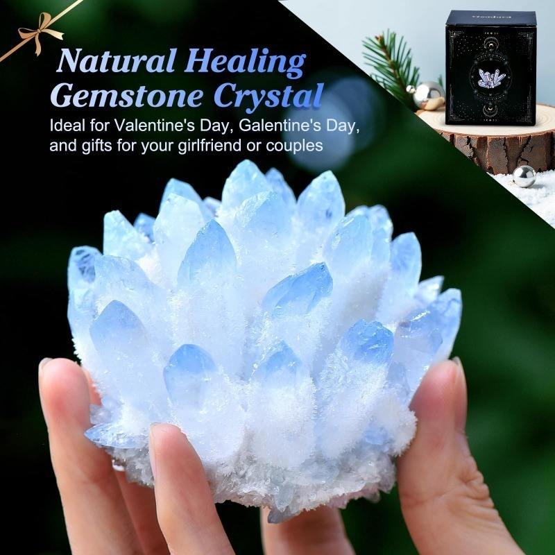 CrystalHola 200-300g Healing Quartz Stone Feng Shui Souvenir Blue Crystal Ghost Cluster Floral Pattern Engraved for Home