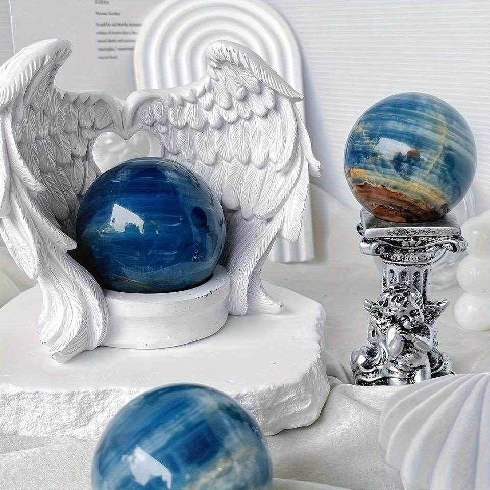 CrystalHola 5.5-6cm Healing Crystal Quartz Ball Blue Lace Craft Gifts Decorative Stones Blue Onyx Sphere Floral Pattern Handmade