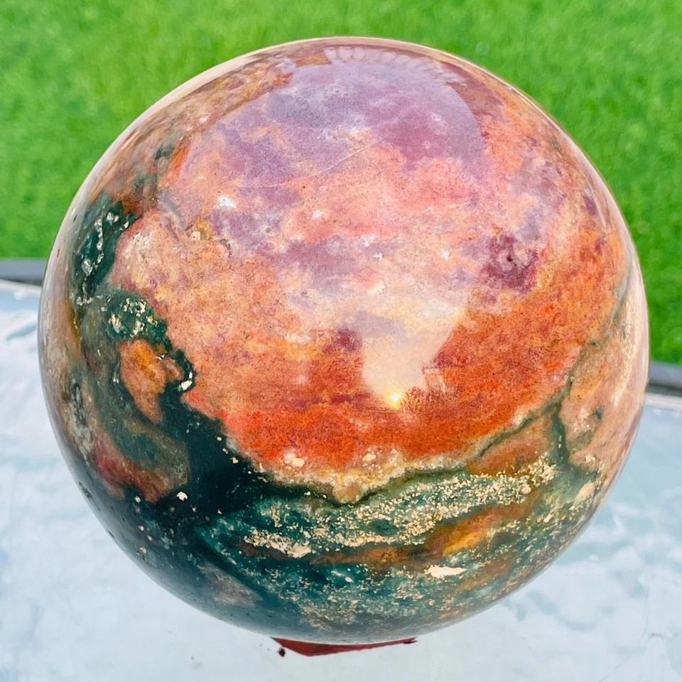 CrystalHola 8-8.5cm Genuine Ocean Jasper Handmade Ball Sphere-Healing Crystal Figurine for Home Decor & Business Gifts