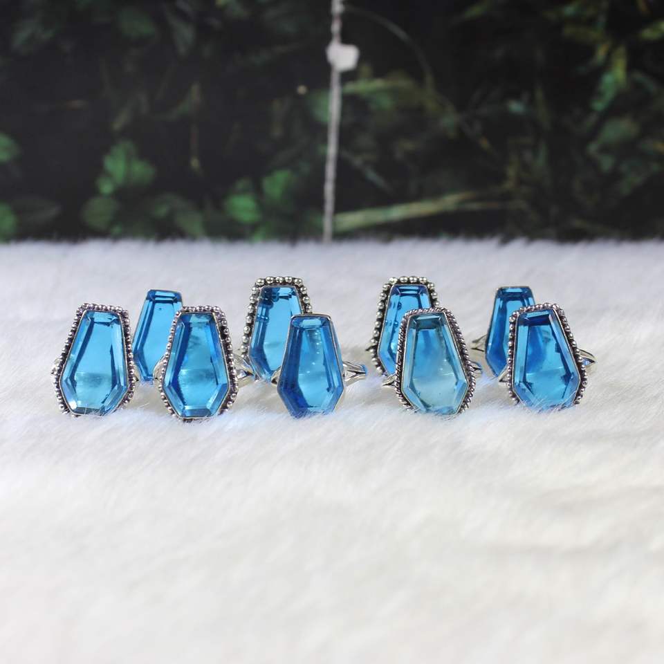 Crystals Blue Kyanite Hydro Gemstone Ring Coffin Silver Plated Ring Jewelry Top Rare Blue Kyanite Ring Coffin Jewelry
