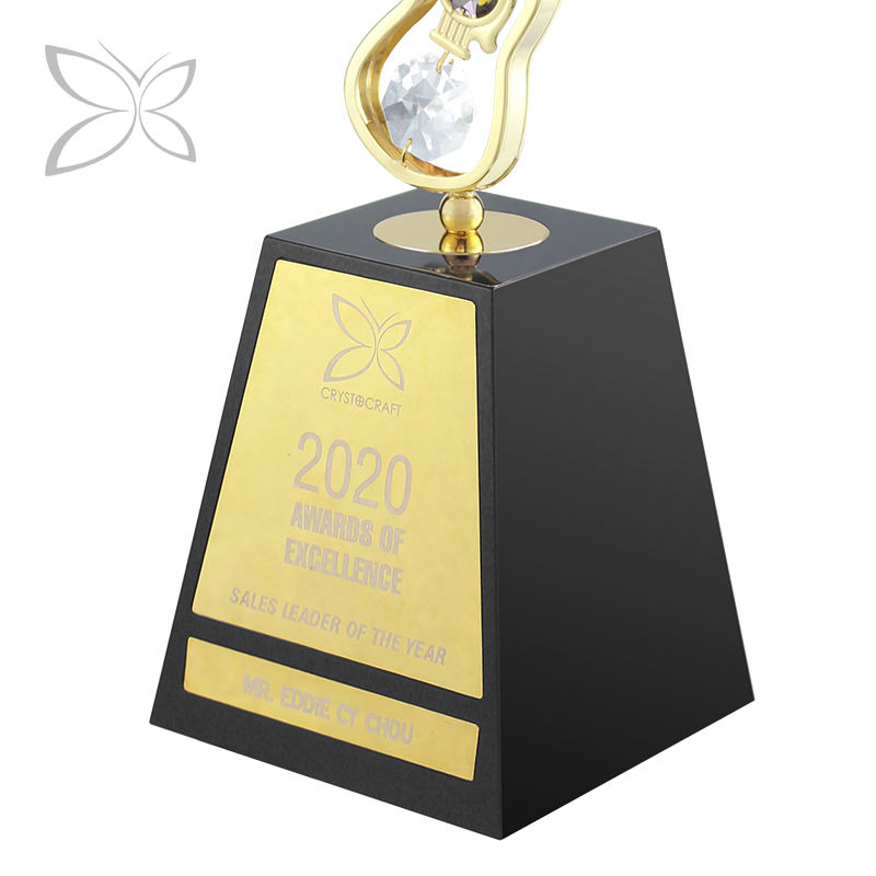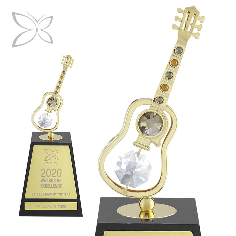 Crystocraft Customised Gold Plated Iron Crystal Folk Art Music Award Trophy Brilliant Cut Crystals Europe Souvenir Silk Screen
