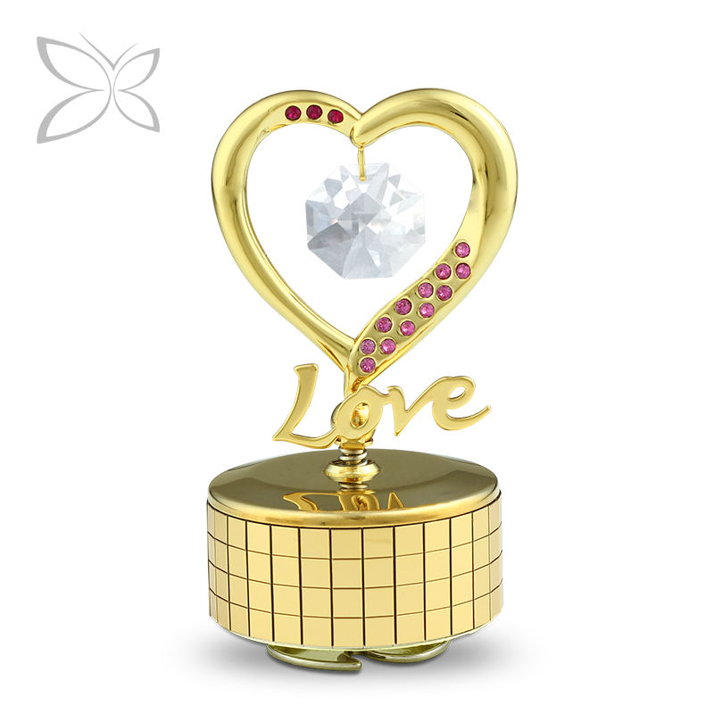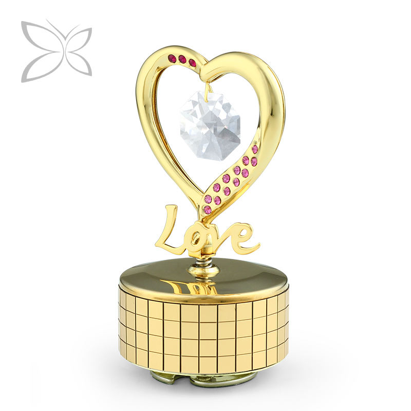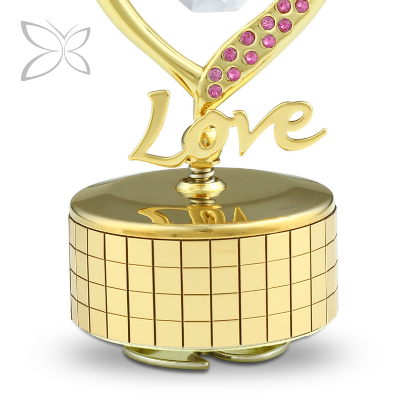 Crystocraft Elegant Metal Loving Heart Decorated with Brilliant Cut Crystals Hand Crank Small Music Box