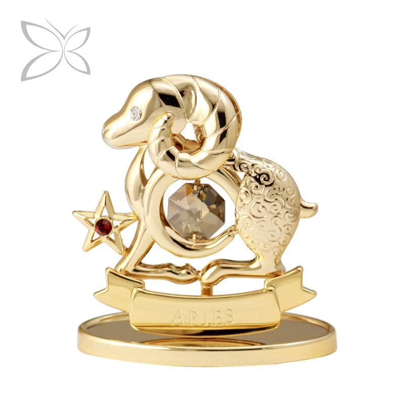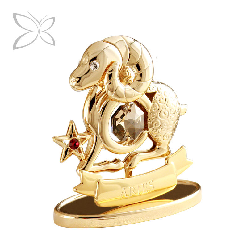 Crystocraft Wholesale Laser Engraved Gold Metal Decorated with Brilliant Cut Crystals Aries Zodiac Figurine