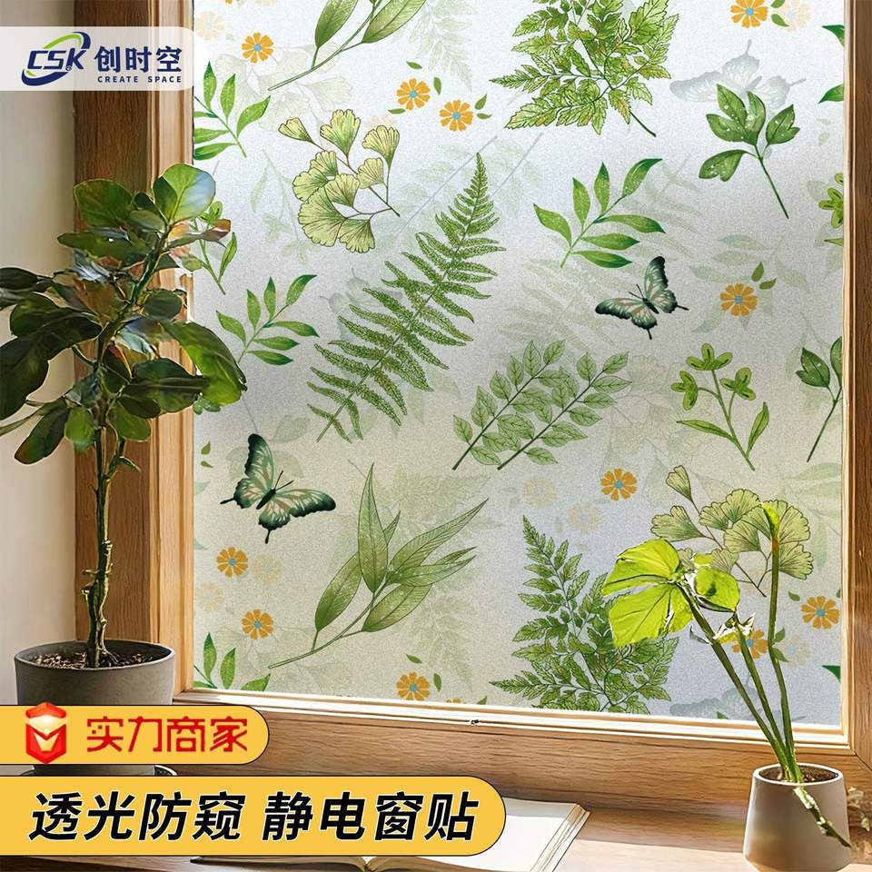 Csk Nature Pattern Window Film Translucent Antistatic Privacy Sticker For Home Bathroom