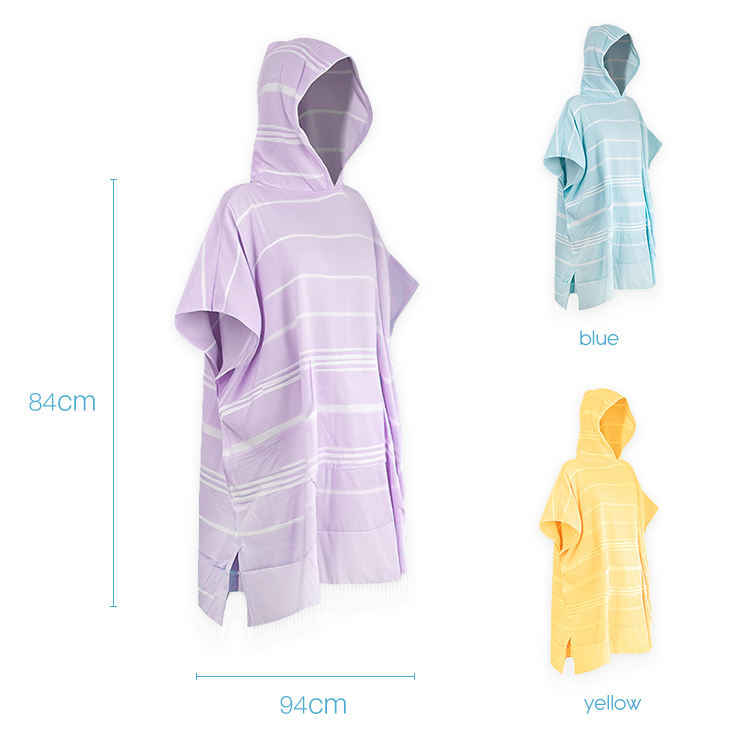 Csutom Logo Comfortable Surf Poncho Towel Turkish Cotton Striped Bath with Knitted Hood and Tassel Beach Poncho
