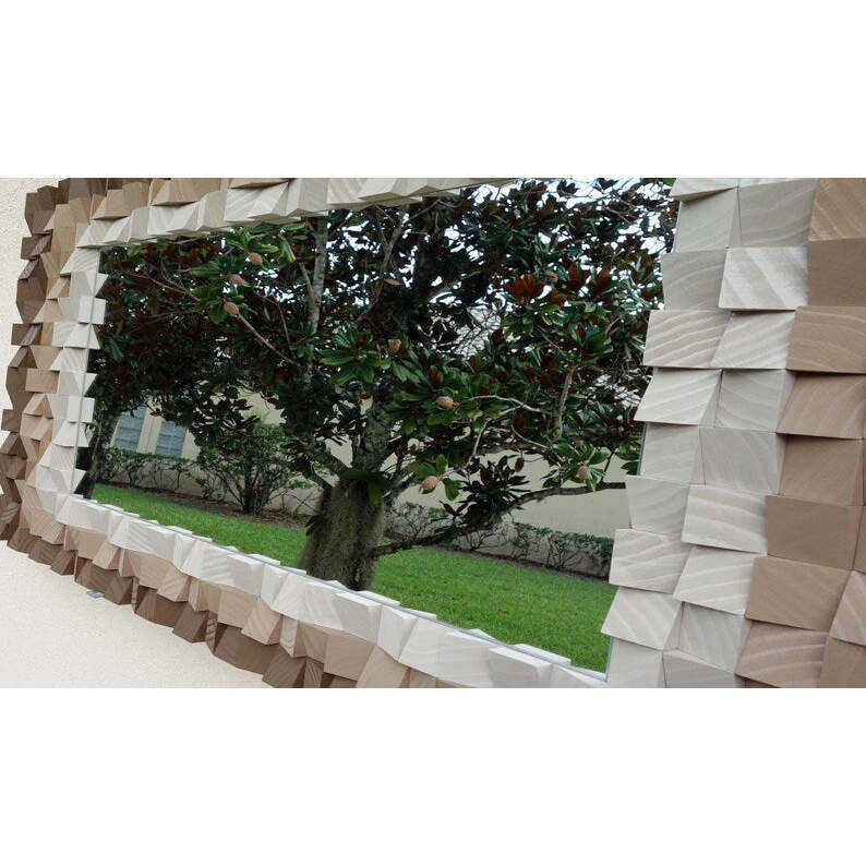 Cube Art Deco Wood Mirror Mosaic Wall Decor for Living Room 4x3.5x3 Feet