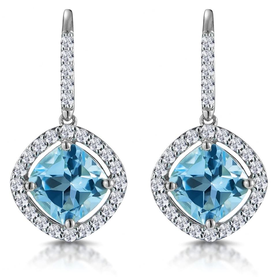 Cubic CZ Halo Blue Topaz Charm Earrings in 925 Sterling Silver