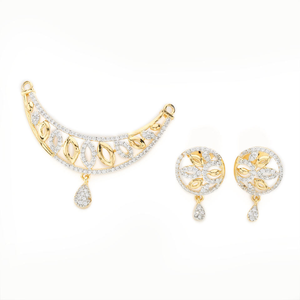 Cubic Zirconia 2 Tone Plated Classic Bollywood Style American Diamond Mangal Sutra Set 423341