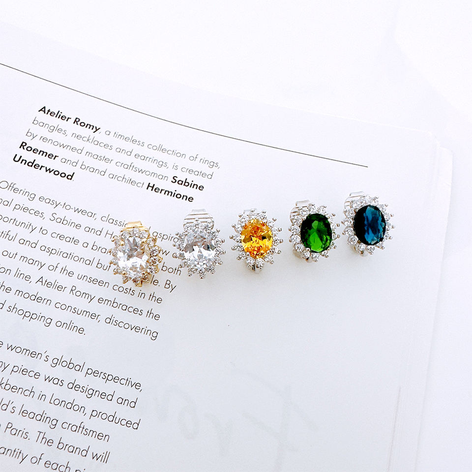 Cubic Zirconia Clip Earrings Fashionable Trendy CZ Oval Stud for Women Men Kids in Copper Brass Silver Jewelry