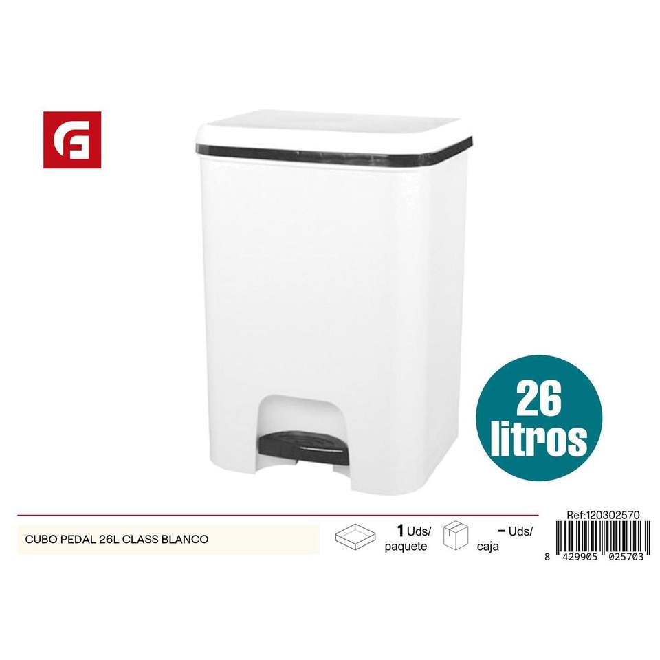 Cubo Pedal 26L Class Blanco HDPE Para Dormitorio Cocina