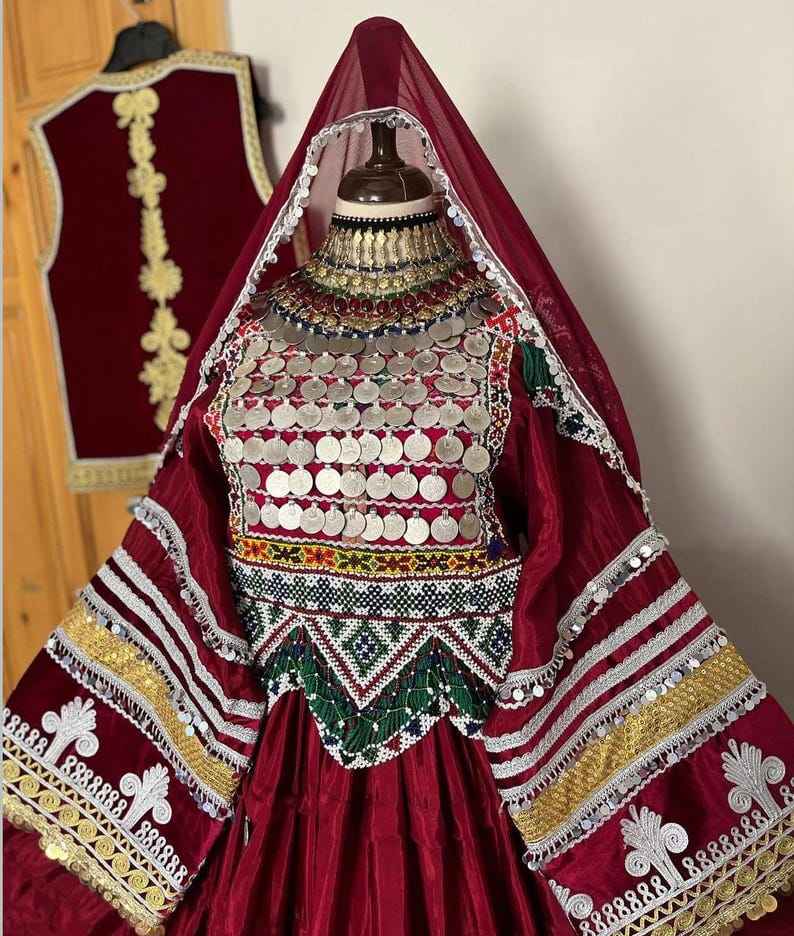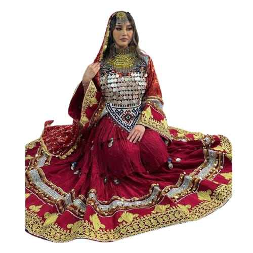 Cultural Afghani Maxi Dress Long Flared Cut Mirror Designs Ethnic Needlework Tribal Pattern for Festive Occasions Featuring Long