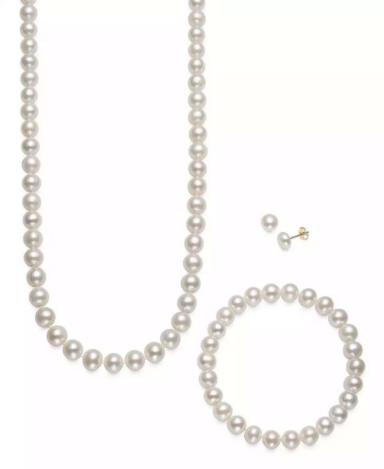 Cultured Freshwater Pearl 3 Piece Set, Necklace, Earrings and Bracelet in 14k Gold | Macy's