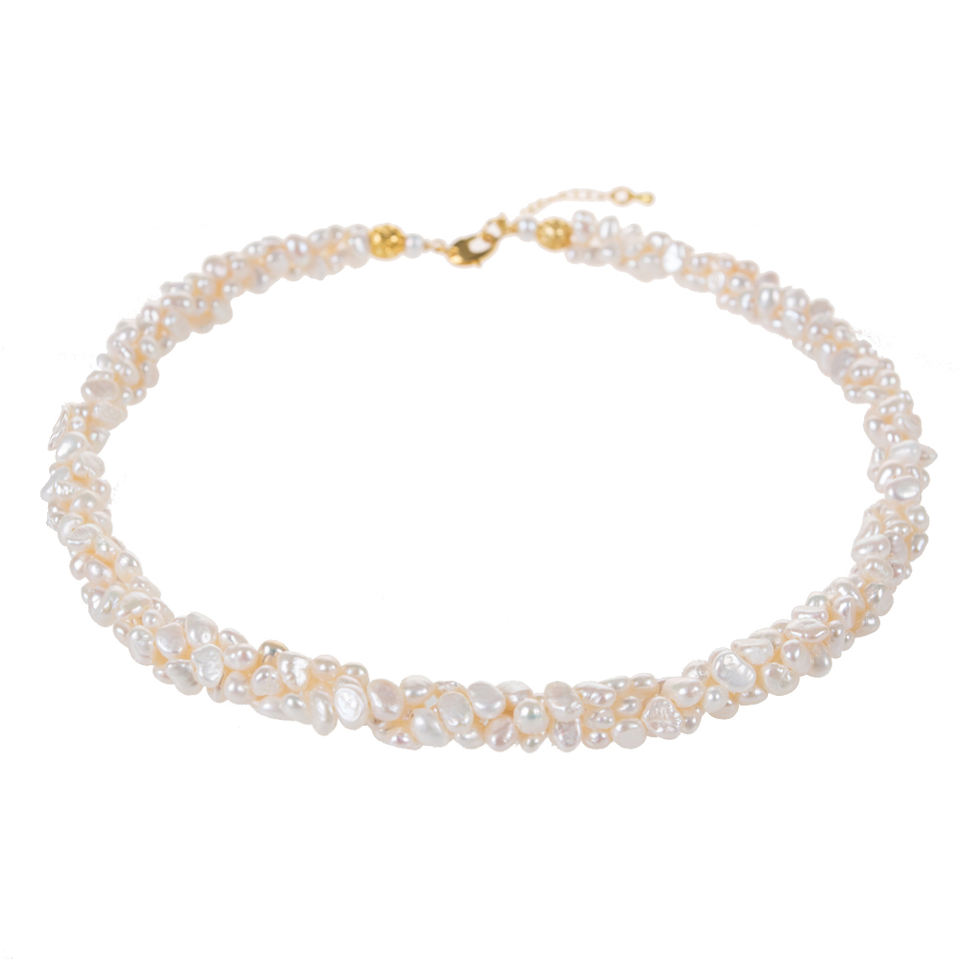 Cultured White Pearl Necklace with 3 Rows Twisted 18-Inch Chain 5-6mm Size Pearls Model TWN914