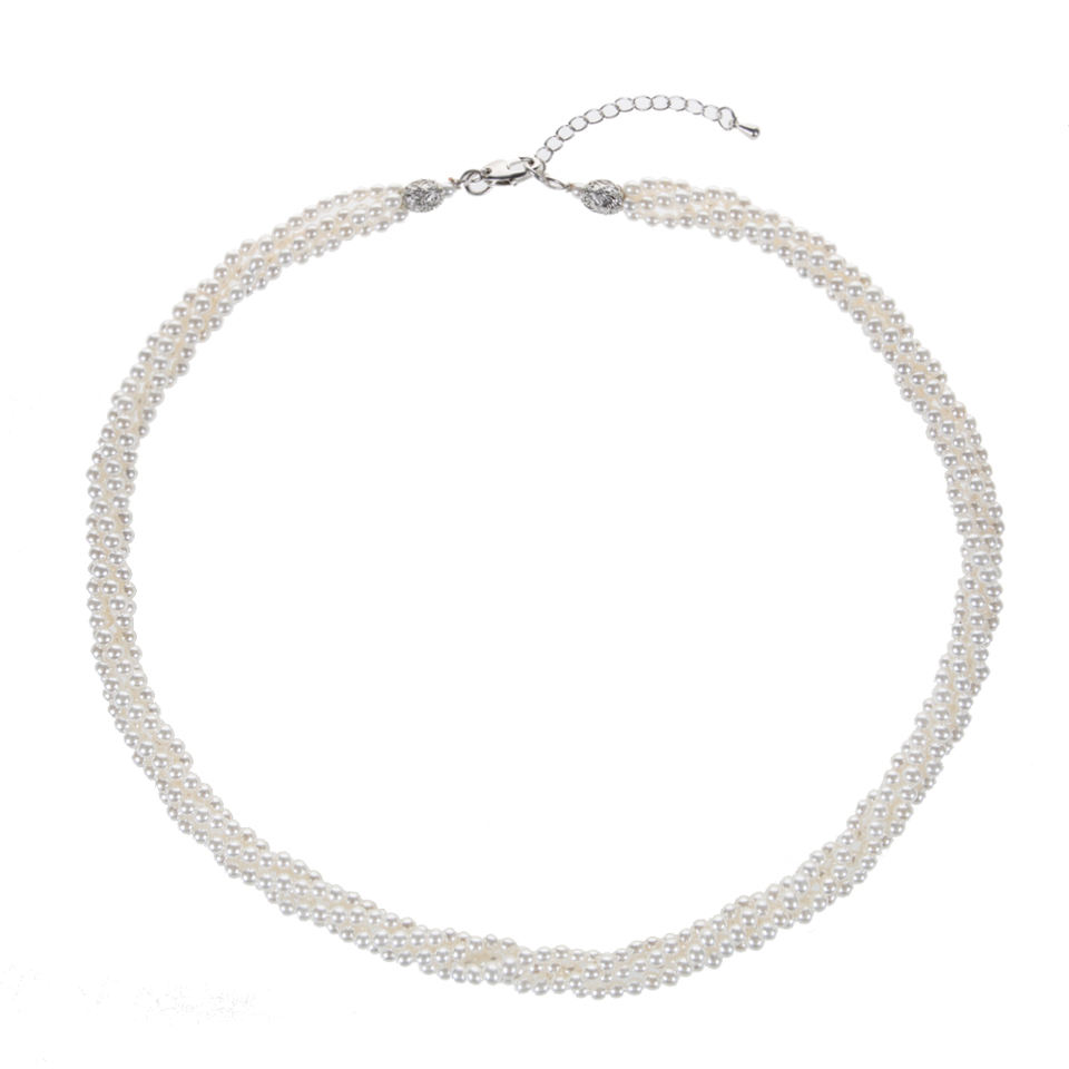 Cultured White Pearl Necklace with 4mm Size Beads 4Rows Twisted 18-Inch Chain 18-Inch Cultured White Pearl Necklace