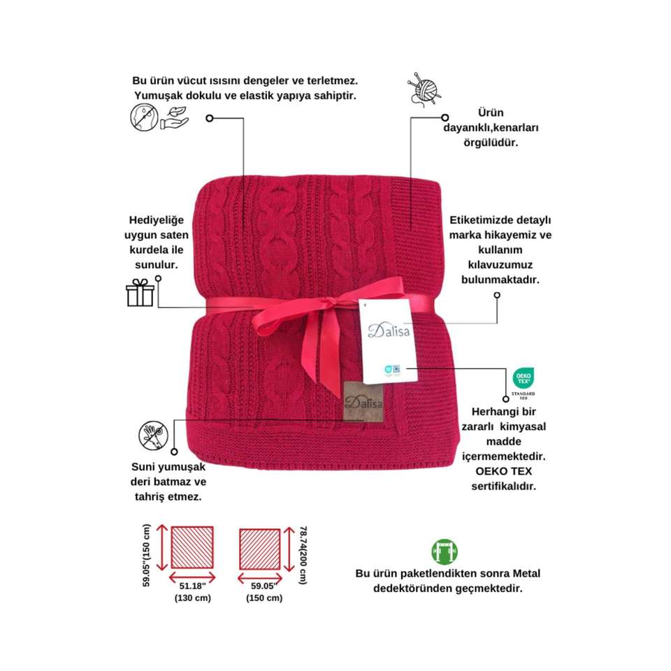Cuo Knitted Tricot Sofa Shawl, Children's Blanket Cuo Red - 130x150