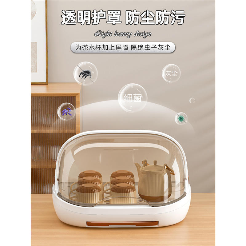 Cup Storage Rack With Lid Oval Detachable Drain Tray For Kitchen Beverage Glass Cup Holder Flip Top Design