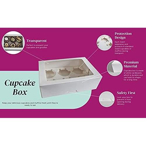 Eco-Friendly Paperboard Cupcake Boxes with Built-in Self-Erecting 6-Hole Insert Firmly Holds Upright Position for Food Service