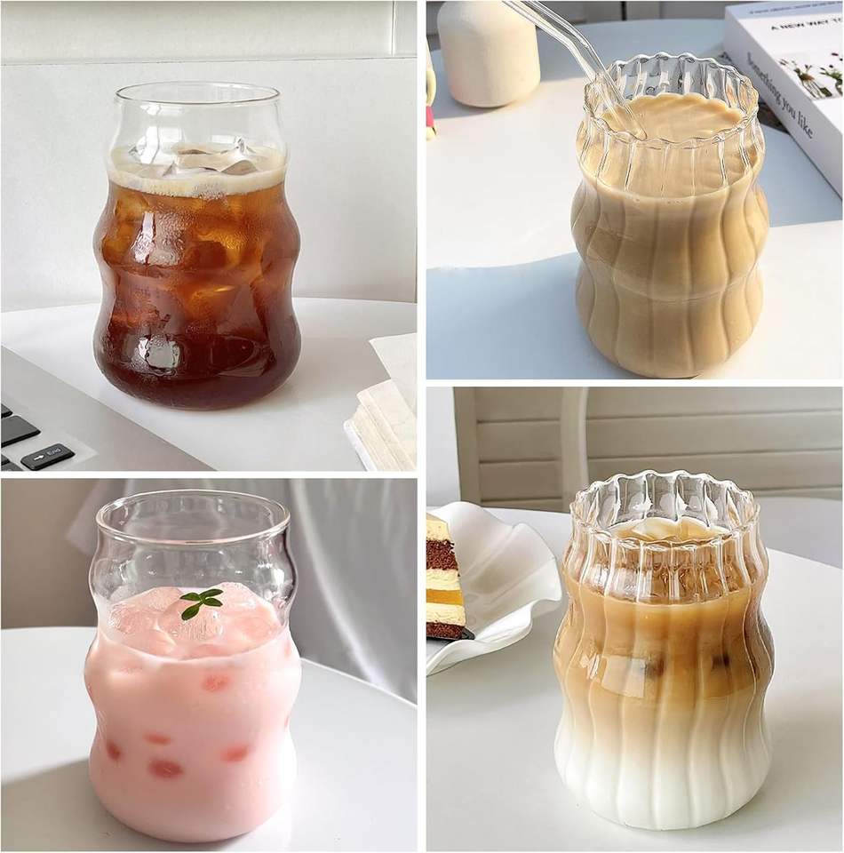 Cups 18 Oz Vintage Drinking Glassware Ripple Cocktail Glasses for Iced Coffee Juice Beverage Milk