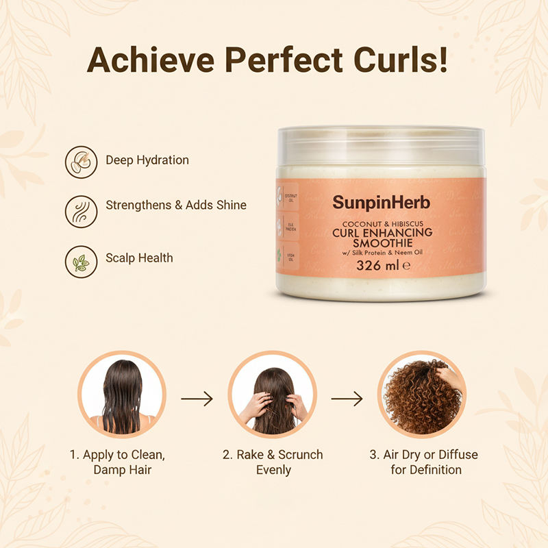 Curl Defining Moisturizing Smoothie Cream with Coconut Hibiscus for Dry Damaged Frizzy Natural Curly Hair Care