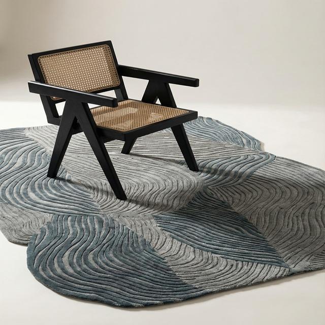 Currents Rug Hand-Tufted Wool/Tencel Striped High Pile Thick Eco-Friendly Latex Backing Non-Slip Rug Sets Home Commercial Use