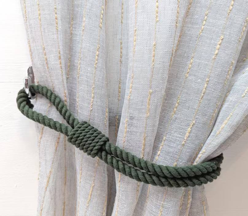Curtain Holdback Dark Green Cotton Rope Tieback for Natural & Rustic Interiors