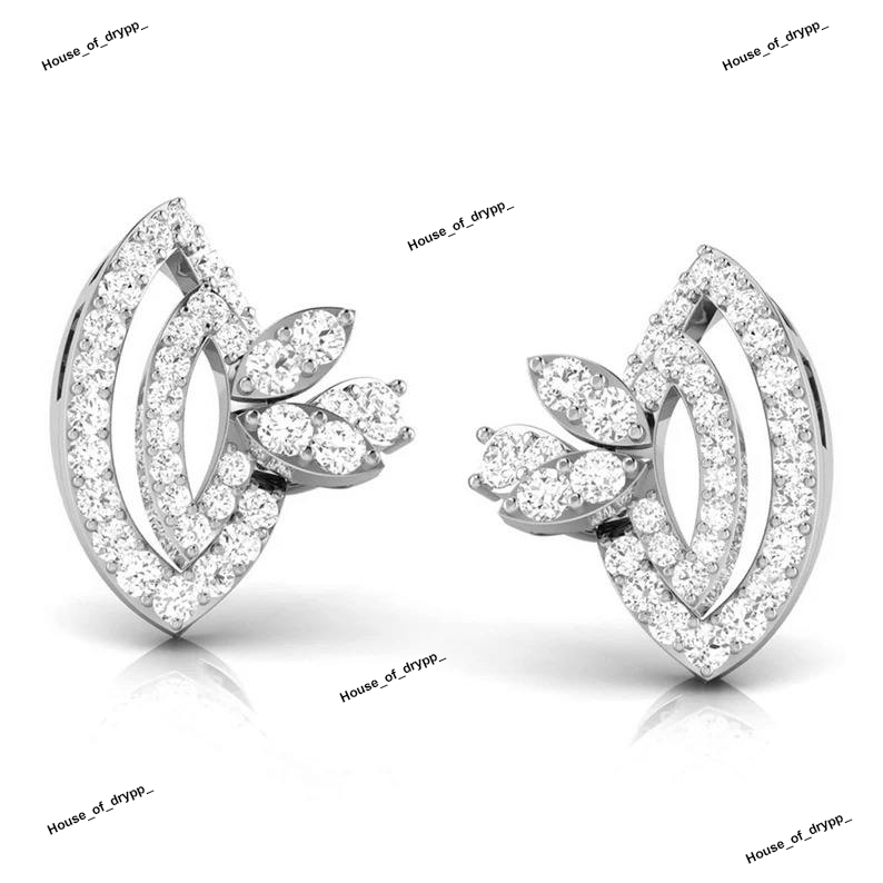 Curved Leaf 925 Silver Stud Earrings With Marquise Moissanite Diamond Detailing Iced Out Elegant Modern Luxury Statement Design