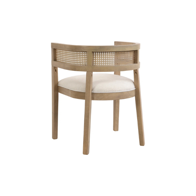 Curved Wrap Back Teak Rattan Dining Chair with Woven Cane and Cushion Modern Design for Restaurant Hotel or Home Dining