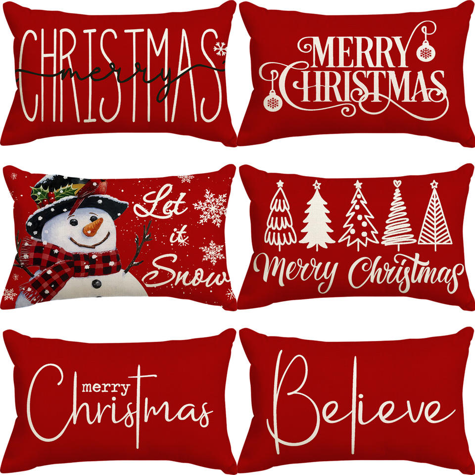 Cushion Cover Linen Lumbar Pillow Cover Printed Xmas Holiday Home Decor Sofa Cushion Cover