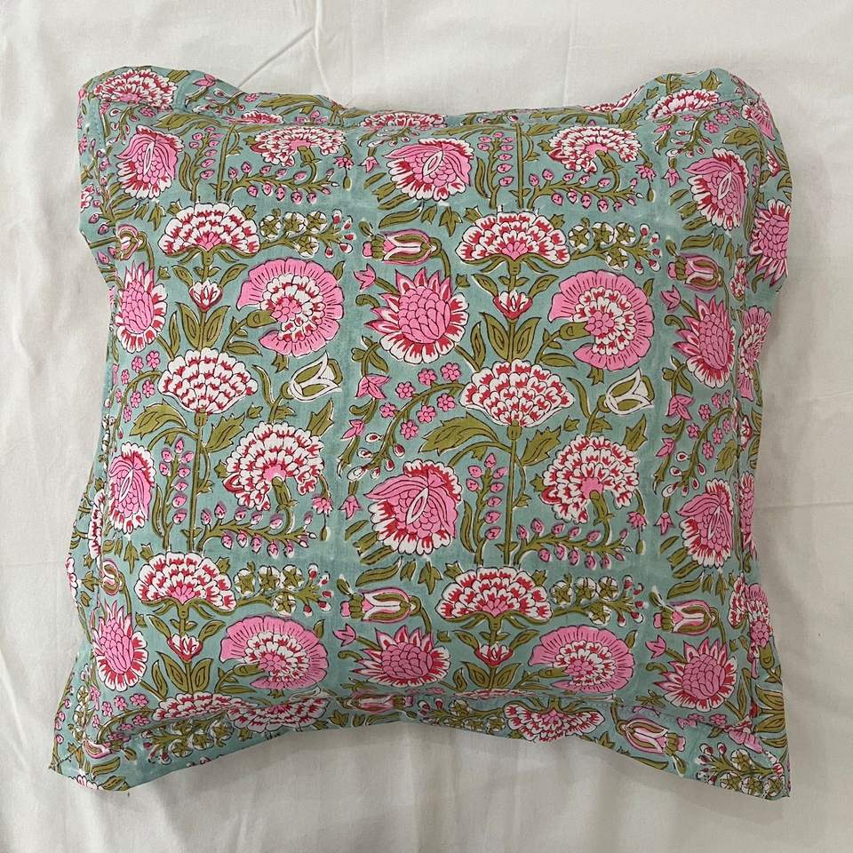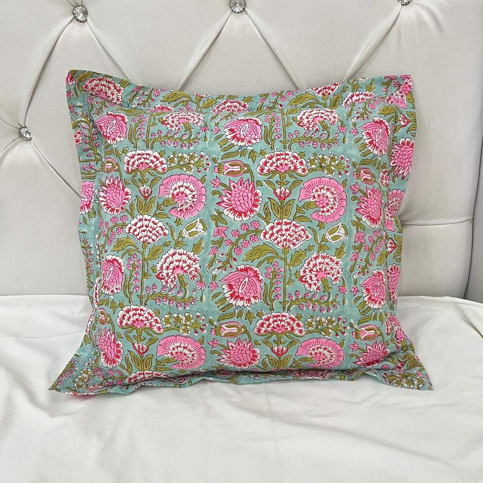 Cushion Covers, Sage green and Pink Indian Hand Block Printed Cushion cover Custom Size Christmas gift Pillowcases wedding party