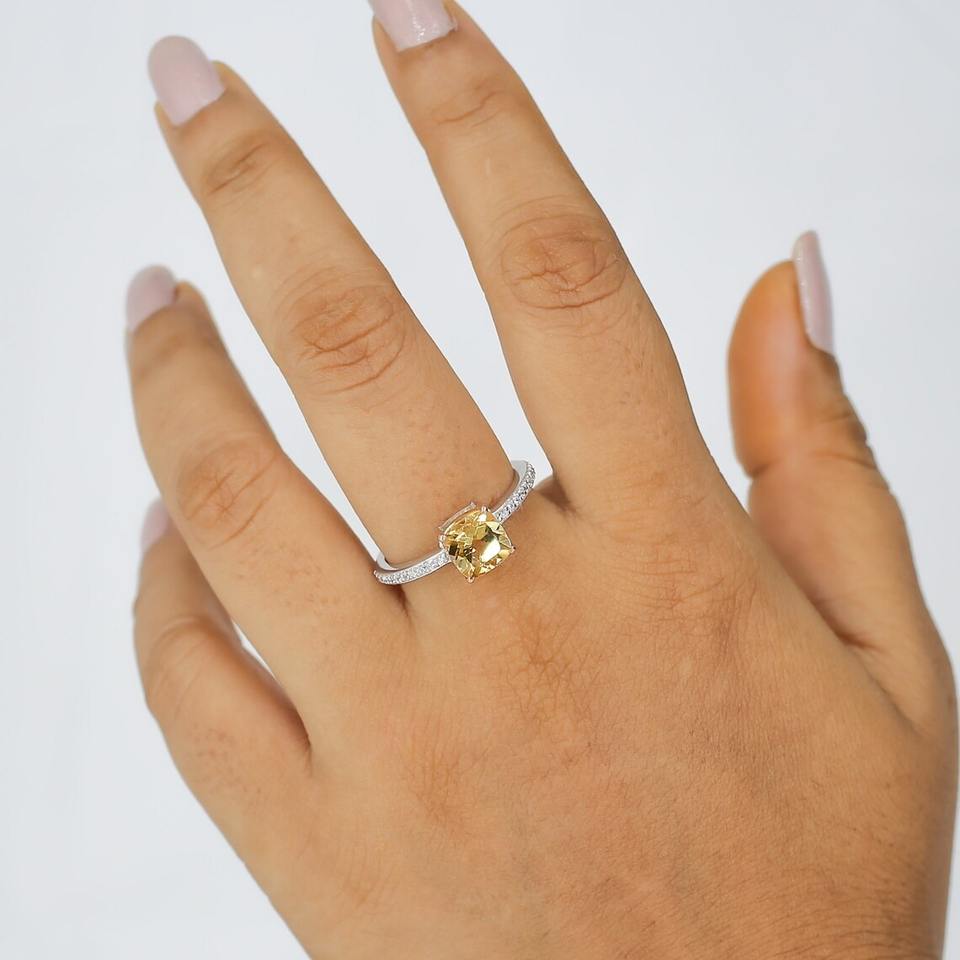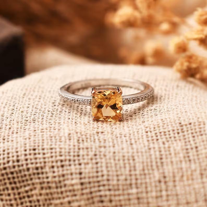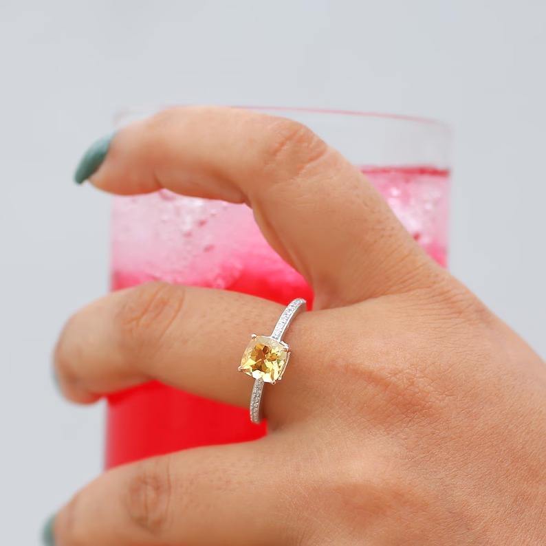 Cushion Cut 7x7mm Citrine Ring 925 Sterling Silver Fine Gemstone Ring Handmade Engagement Wedding Anniversary Jewelry For Women