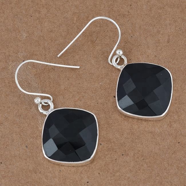 Cushion Cut Black Onyx Gemstone 925 Sterling Silver Classic Dangle Earrings Fashionable Wedding Gift for Party Fine Hoop Ear