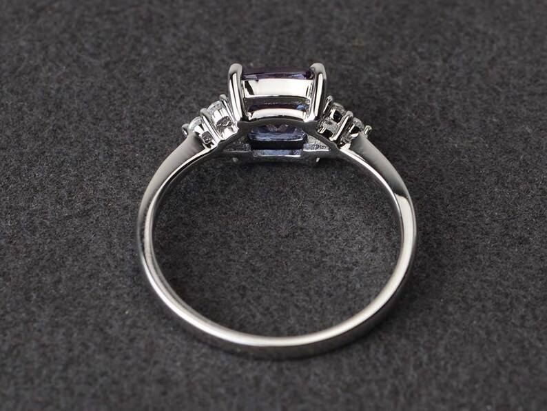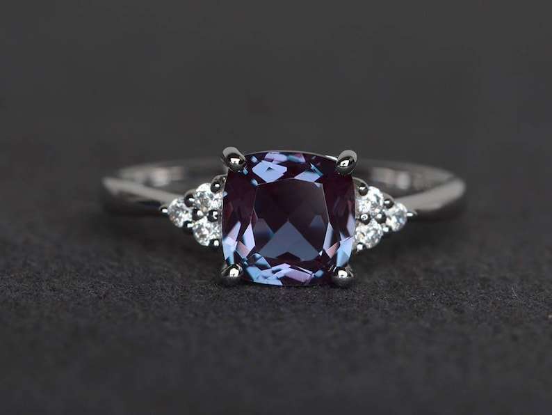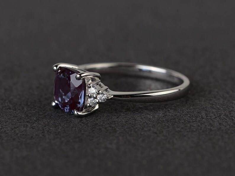 Cushion Cut Lab Alexandrite Ring Gemstone Ring Sterling Silver Color Changing Wedding Birthstone Jewelry
