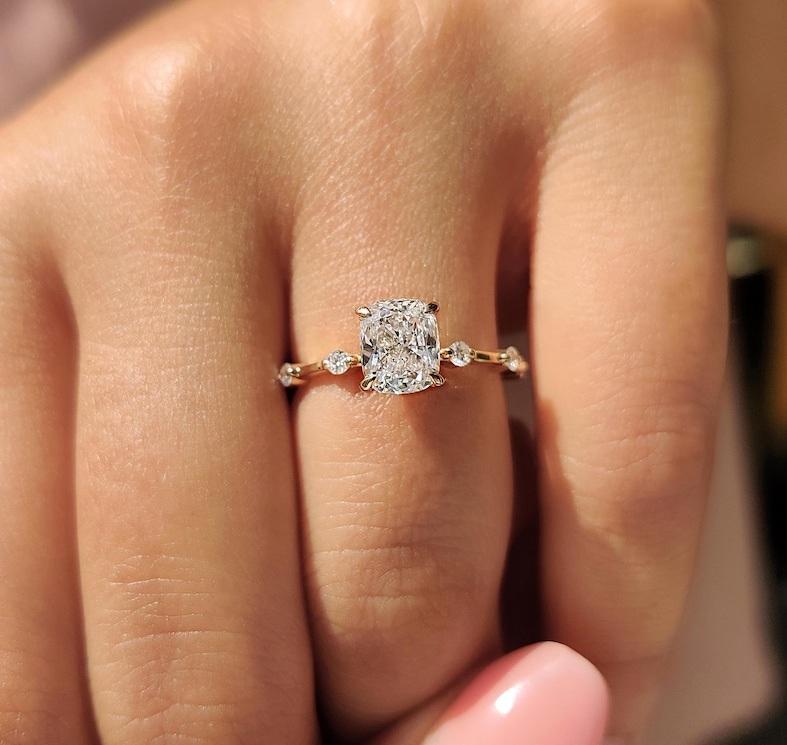 Cushion Cut Lab Grown Diamond Engagement Ring 14K Yellow Gold Round Cut Side Stone Wedding Ring for Women Fine Jewelry Ring