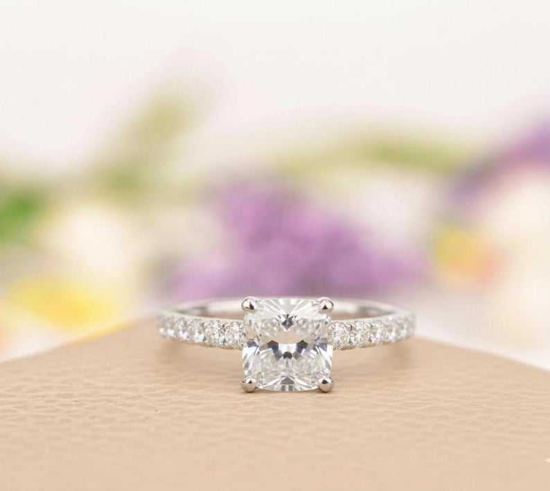 Cushion Cut Moissanite Engagement Ring Solitaire Moissanite Wedding Ring Classic Promise Forever Ring For Women