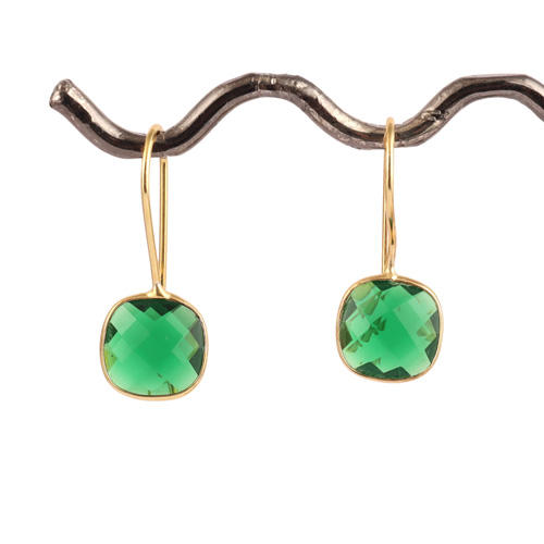 Cushion Shape Gemstone Dangle Earring Minimalist Jewelry Green Emerald Quartz Hook Drops 18k Gold Plated Bezel Setting Earrings