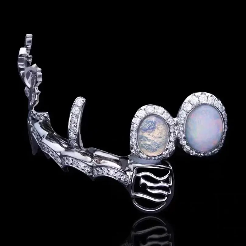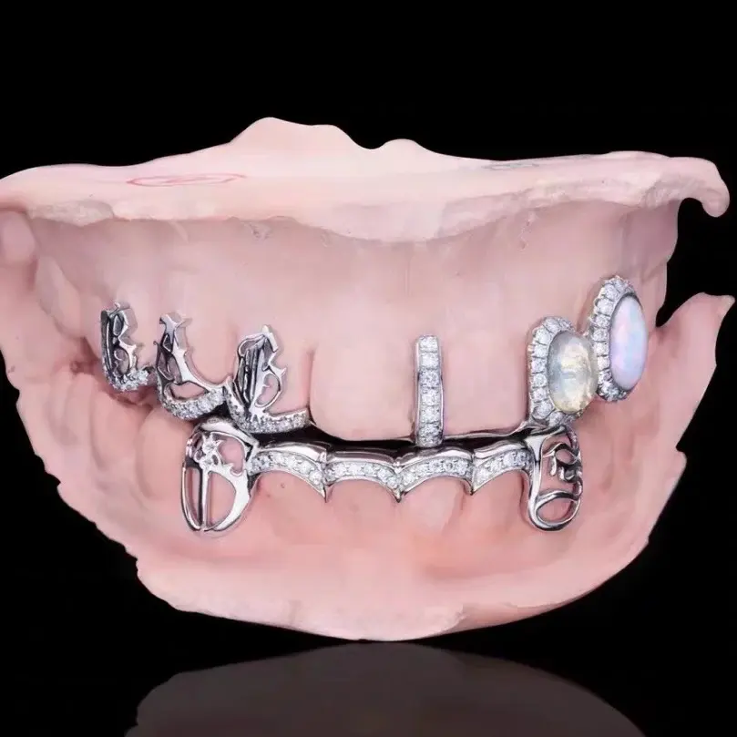 Cusomiz Moissanite Diamond Opal Grillz 925 Sterling Silver Border Line Perfect Teeth for Look Unisex