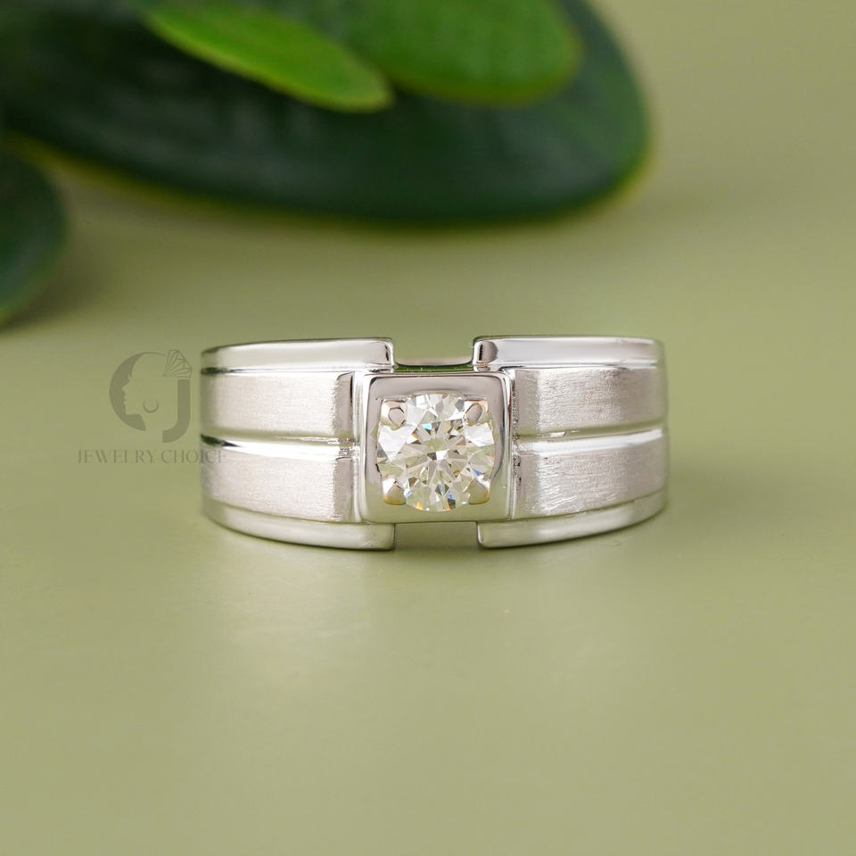 Custom 0.64ct Round Cut Lab Diamond Mens Ring VVS VS DEF Yellow Gold Color Band Unique Gents Solitaire Jewelry Manufacturer