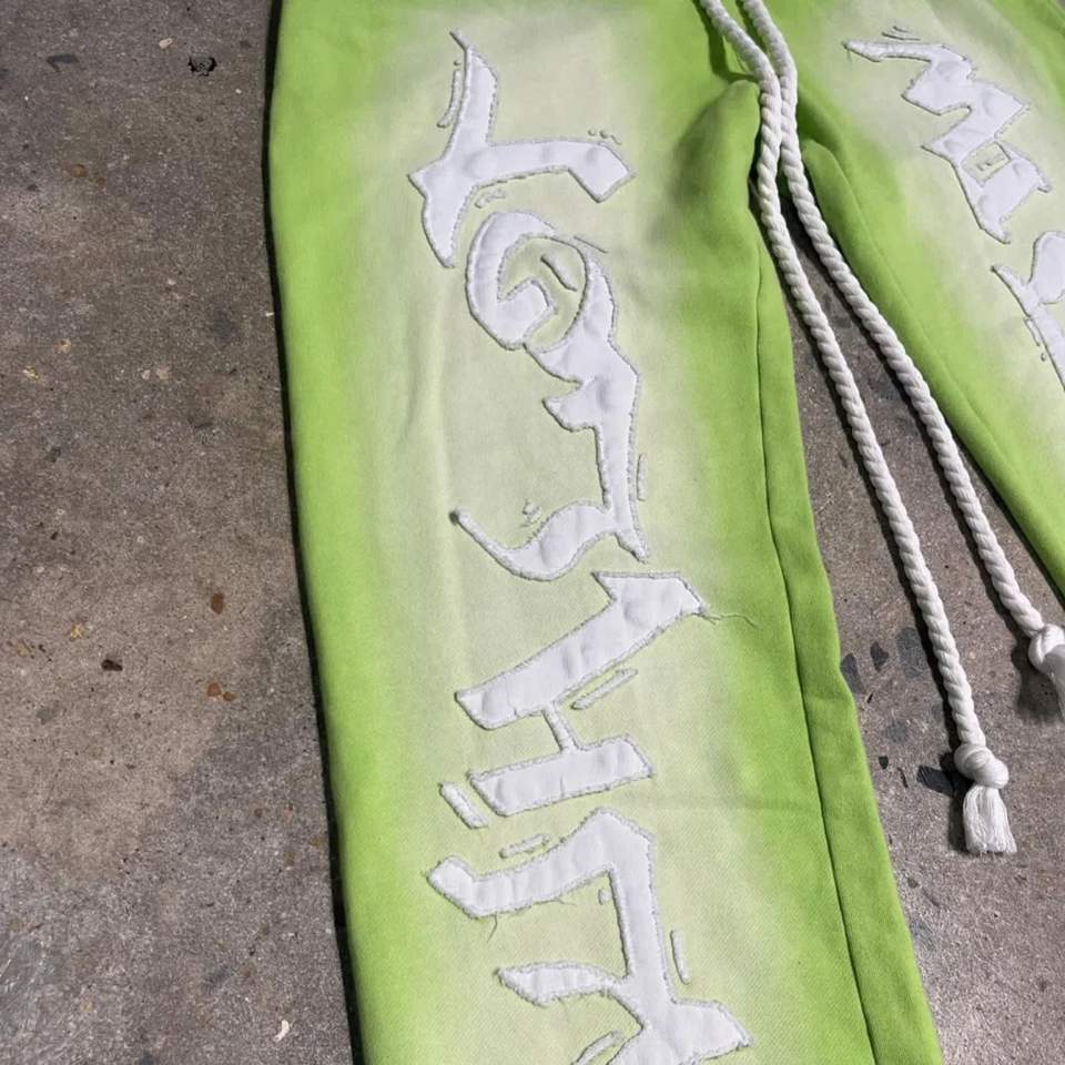 Custom 100% Cotton Applique Graphic Embroidered Patches Flare Sweat Pants Rhinestones Acid Wash Jogger Flared Pants