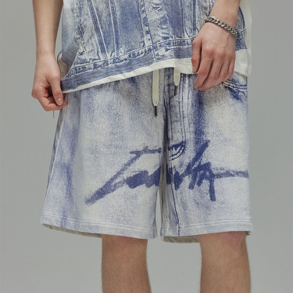 Custom 100% Cotton French Terry Baggy Bermuda Shorts Elastic Waist Sweat Shorts with Drawstring Knee-Length Sublimation Shorts