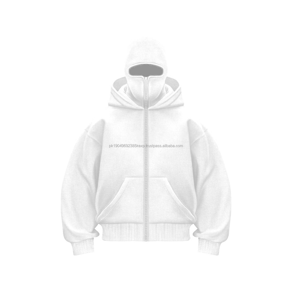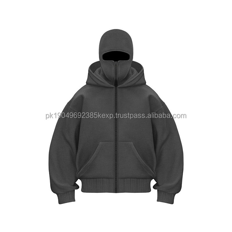 Custom 100% Cotton Heavyweight Oversized Double Hood Zip Drop Shoulder balaclava Hoodie Sweatshirt for Men for Spring
