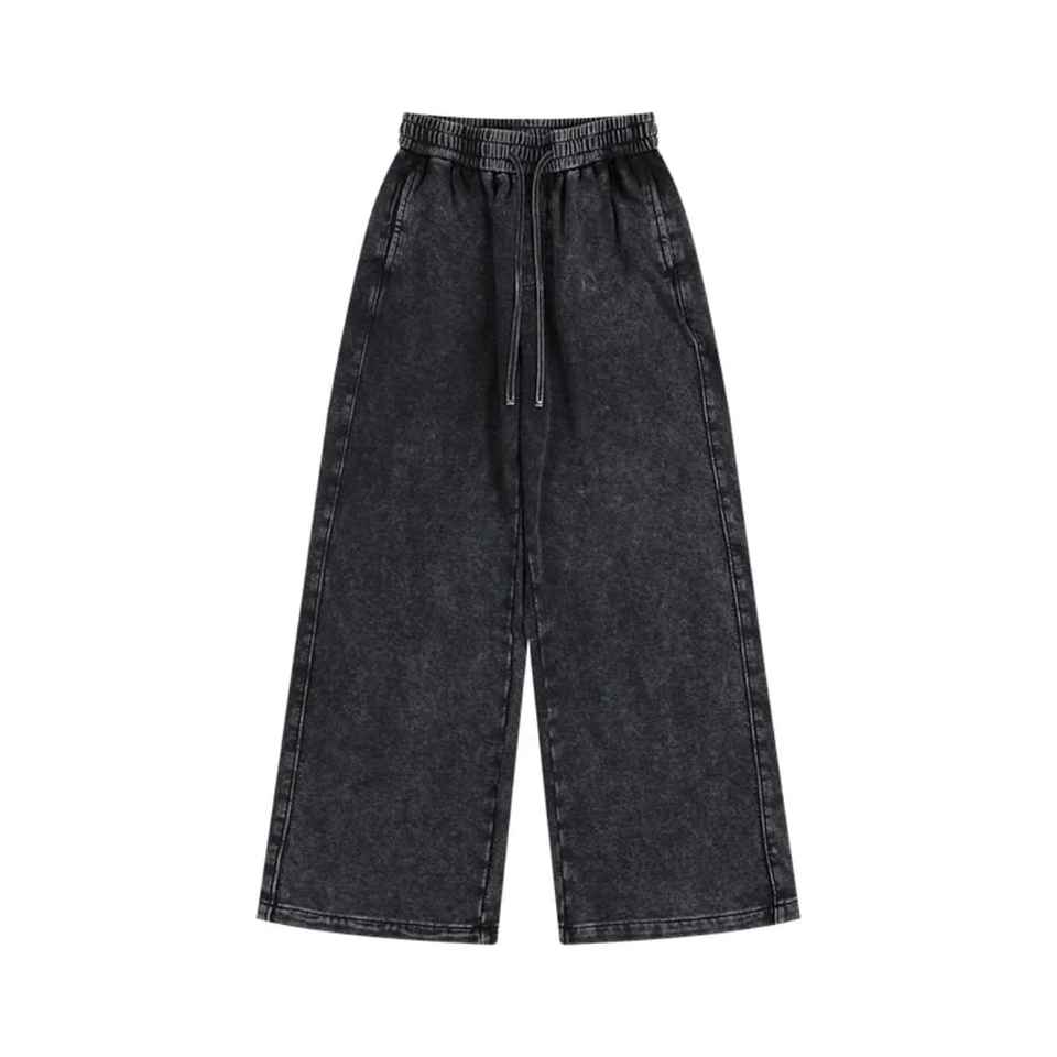Custom 100% Cotton Luxury Men's Straight Leg Sweatpants Sun Faded Washed with Embroidered Logo Casual Style Fleece Sweat Pants