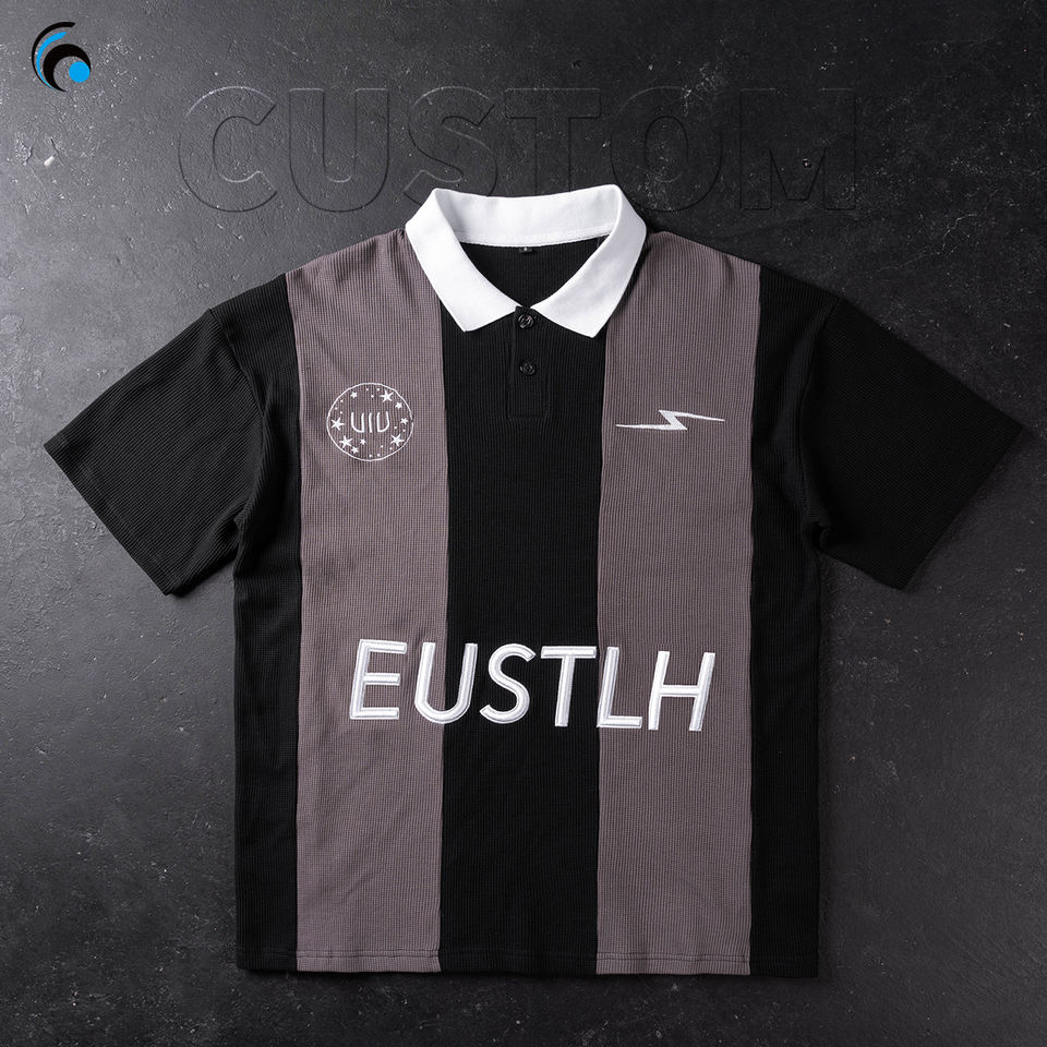 Custom 100% Cotton Men Drop Shoulder Waffle Streetwear T Shirt Heavy Weight Thermal Waffle T-shirt V-Neck Casual Jumper Men
