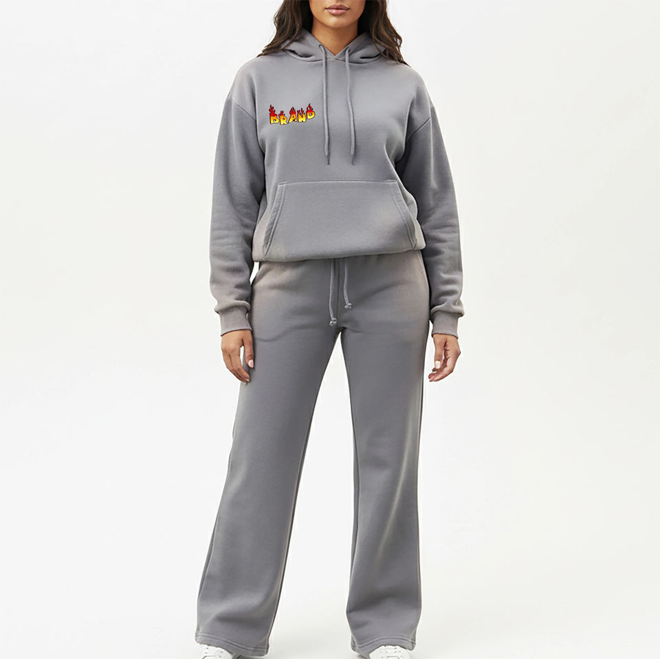 Custom 100% Cotton Plus Size 2 Piece Solid Lace Hoodie Set Custom Embroidered Logo Winter Casual Wear Sun fade Wash Ladies