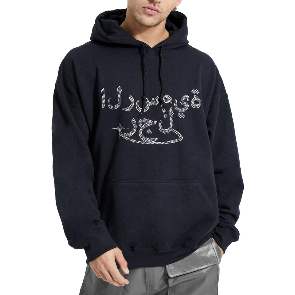 Custom 100% Cotton Pullover Hoodie For Men Breathable Thermal Knitted Fabric With Rhinestone Manufactured In Pakistan