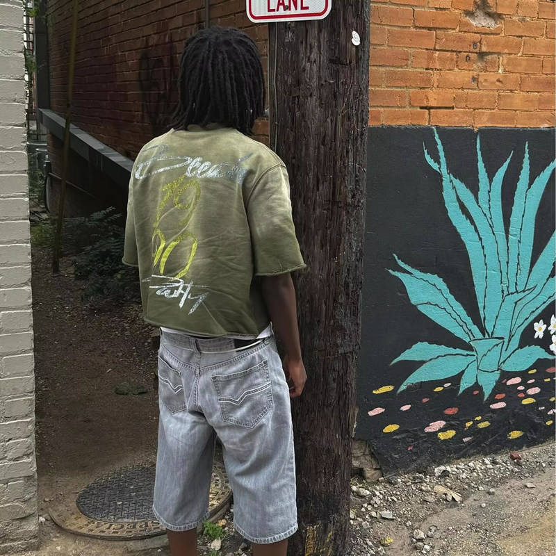 Custom 100% Cotton Streetwear Vintage Boxy Fit Crew Neck Oversize T-Shirt DTG Graphic Print Solid Pattern Crop Length Casual