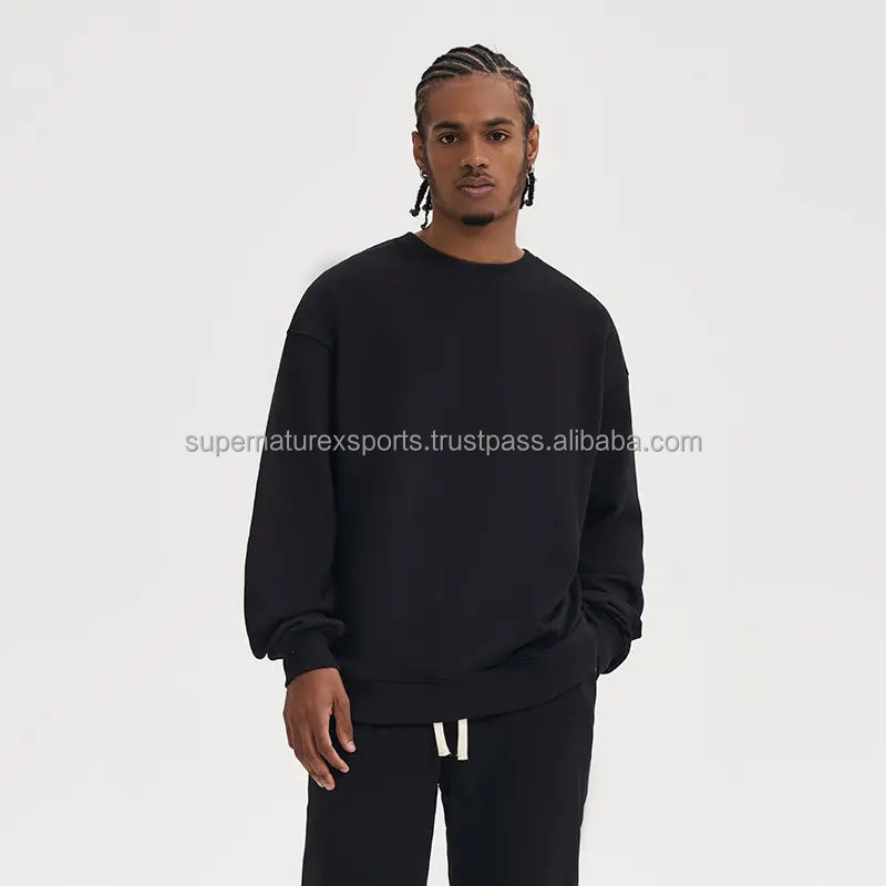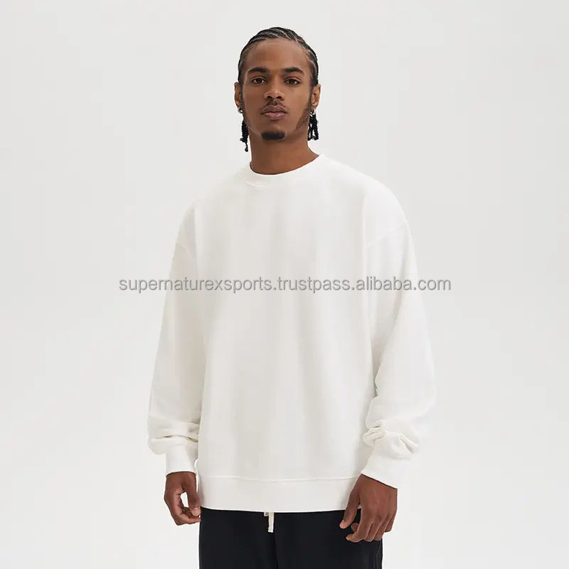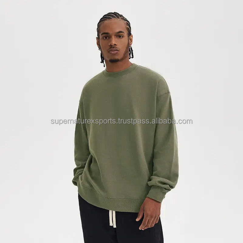 Custom 100% Cotton Sweatshirt for Men Manufacturer's Supply 480g Vintage French Terry Crewneck Sweatshirt Solid Oversized Winter