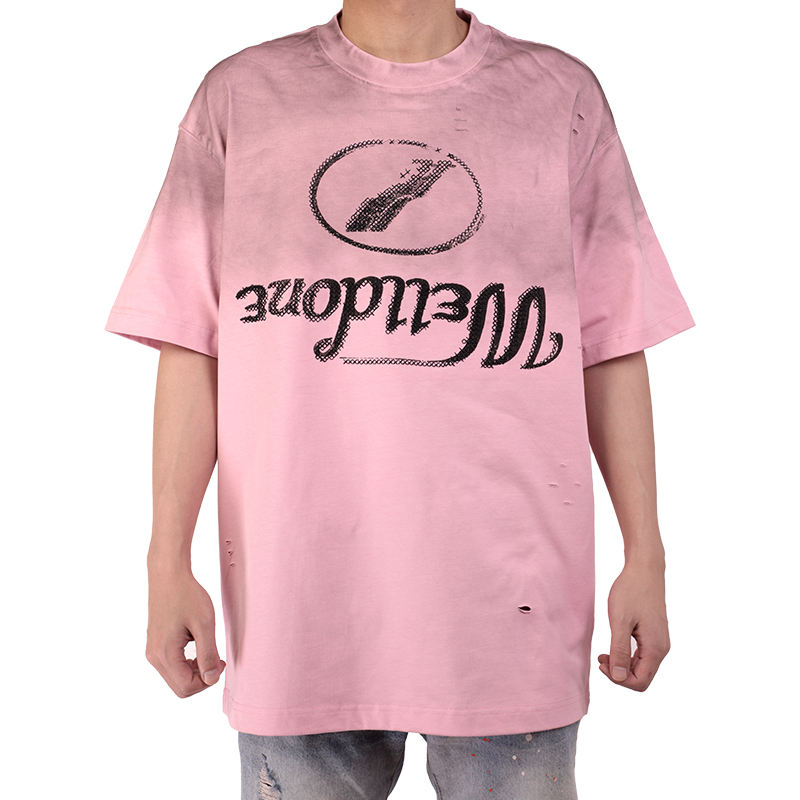 Custom 100% Cotton T-Shirts Heavyweight Thick Collar Oversized Men'S Alphabet Print Pattern Gradient Men'S T-Shirts
